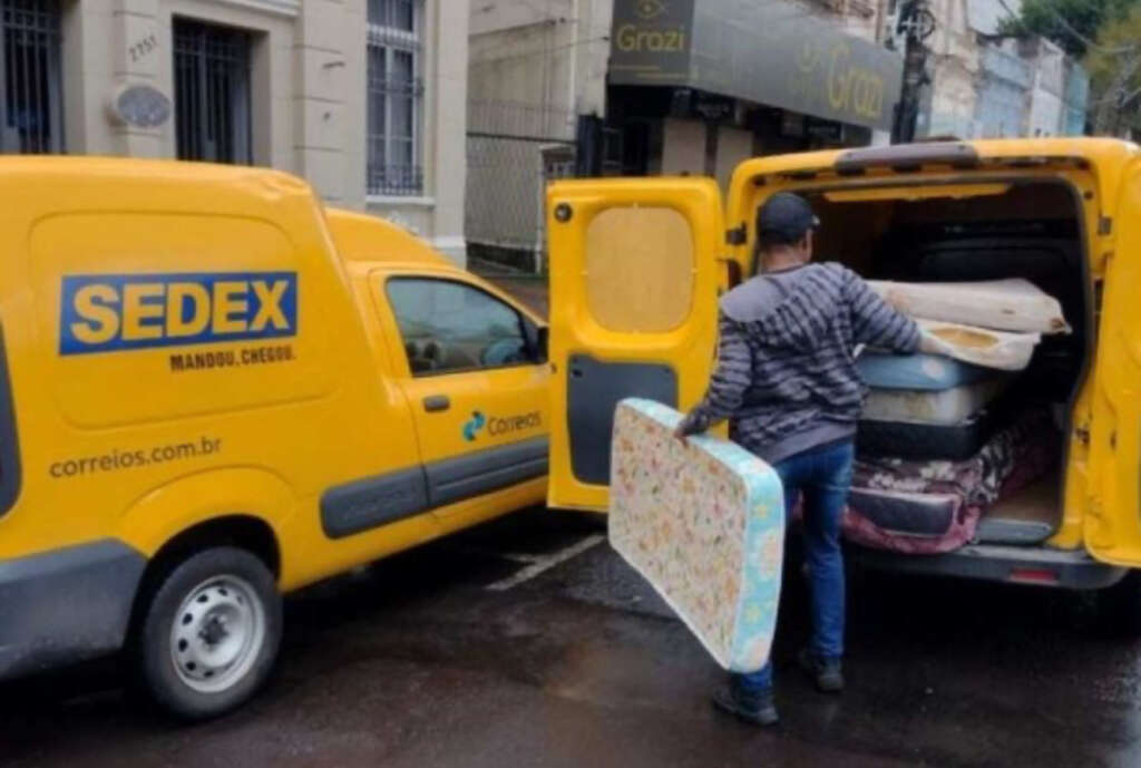 Além de receber as doações, os Correios também fazem o transporte gratuito até as zonas atingidas.