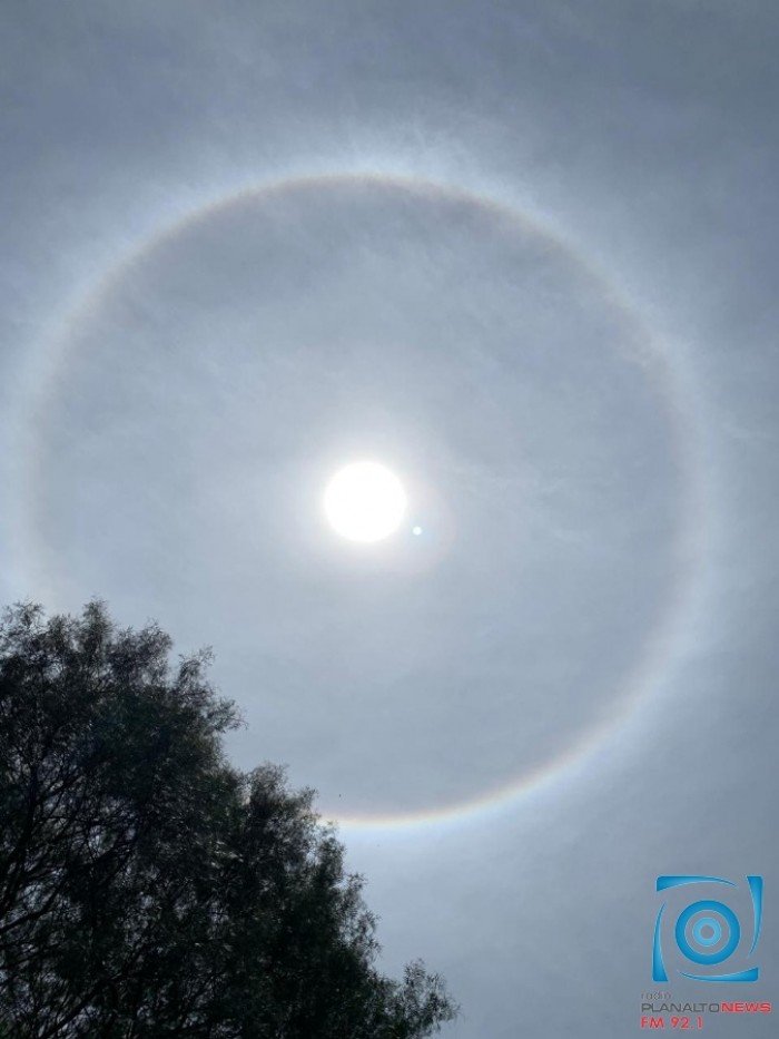 O fenômeno natural conhecido como “halo solar” pode ser visto em várias cidades da região, na manhã desta quinta-feira (15).