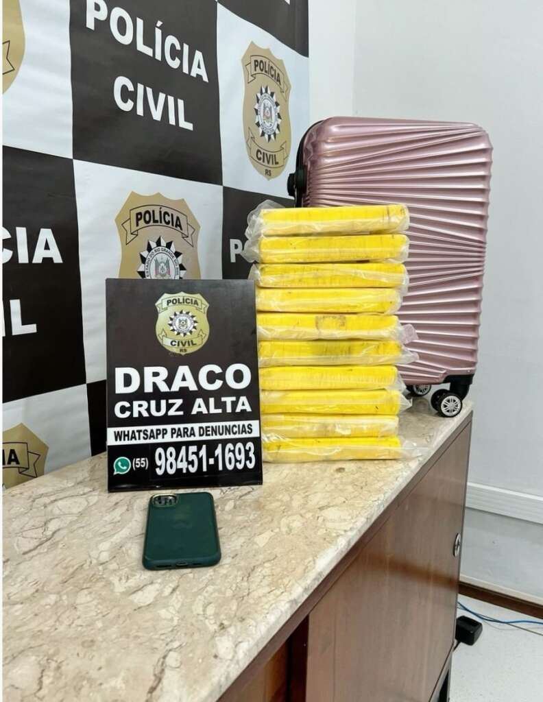 Cocaína avaliada em R$ 1 milhão é apreendida na rodoviária de Cruz Alta