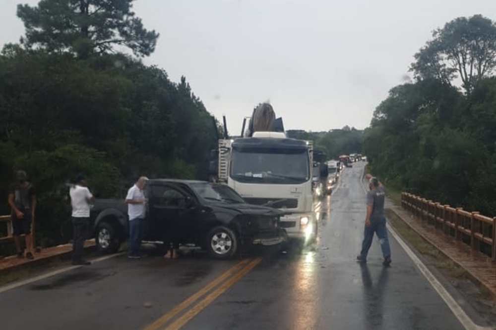 Segundo informações de populares no local, a caminhonete colidiu contra a proteção da ponte e após colidiu contra o caminhão Volvo.