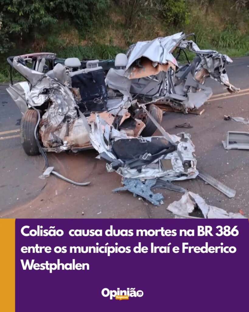 Um grave acidente de trânsito resultou na morte de duas pessoas na manhã desta sexta-feira, 13, no trecho da BR-386 que liga os municípios de Frederico Westphalen e Iraí. De acordo com o Corpo de Bombeiros de Frederico Westphalen, a colisão frontal ocorreu por volta das 5h57min e envolveu um Toyota Corolla e um caminhão destinado ao transporte de ração.