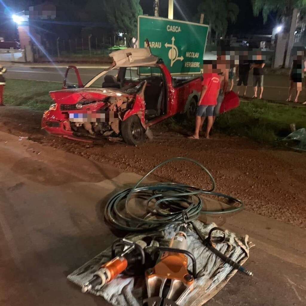 De acordo com informações repassadas pelos Bombeiros Voluntários, o acidente envolveu um Caminhão VW/Tractor e uma Fiat/Strada, ambos placas Mercosul.