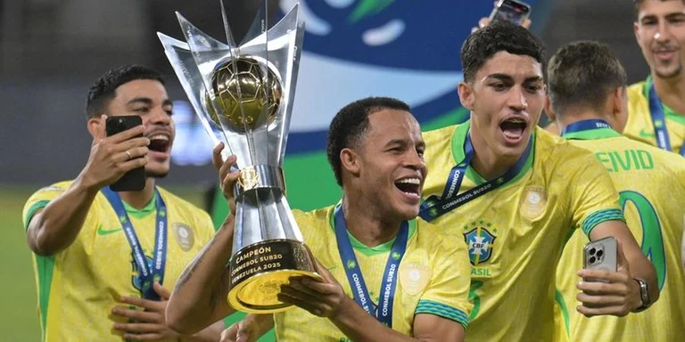Com três horas de “atraso”, a seleção brasileira pôde soltar o grito de campeã do Sul-Americano Sub-20 pela 13ª vez neste domingo. Maior vencedora da competição, a equipe já detinha o título e voltou ao topo do pódio após a rival Argentina não conseguir a goleada por quatro gols de diferença sobre o Paraguai no último jogo do hexagonal final. Depois de sair em desvantagem de 2 a 0, os hermanos até conseguiram reagir ao buscar um insuficiente 2 a 2, mas sofreram outro gol no fim e perderam por 3 a 2 sob gritos de “olé” dos brasileiros.