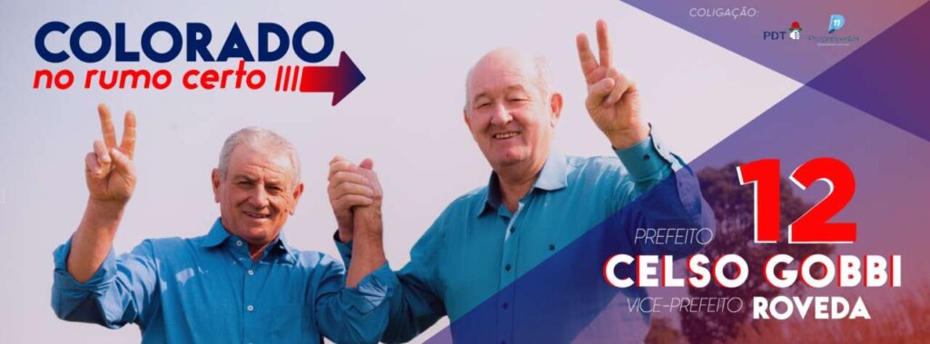 Celso Gobbi, do PDT, foi reeleito, nesse domingo (15), prefeito de Colorado (RS) para os próximos quatro anos, juntamente com seu vice Ivalir Roveda. Os dois fazem parte da coligação Colorado No Rumo Certo, formada pelos partidos PDT e PP.