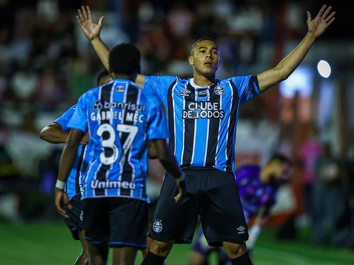 Aos 28, Gabriel Mec cruzou da direita e Carlos Vinícius completou de cabeça no canto direito de Jonathan: 1 a 0. Foi o quarto gol do camisa 95 em quatro rodadas do Gauchão e a primeira assistência do garoto como profissional.
