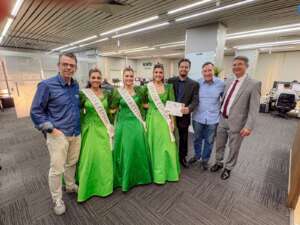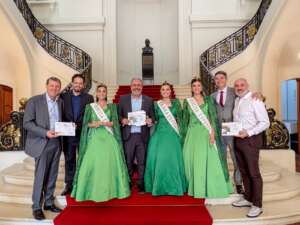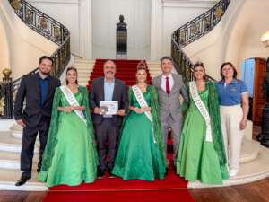 Integraram a comitiva o membro da coordenação da Exposol, Vinícius Moreira, o prefeito de Soledade, Paulo Ricardo Cattaneo, a Corte da Exposol 2026, formada pela rainha Ingrid Ottoni e pelas princesas Eduarda Schaeffer de Camargo e Larissa Sonda, além de Rejani Piccoli, responsável pelo setor de soberanas e recepção.