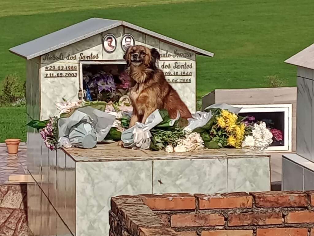 Comovente cena no cemitério: Cachorrinho chora sobre túmulo em Espumoso