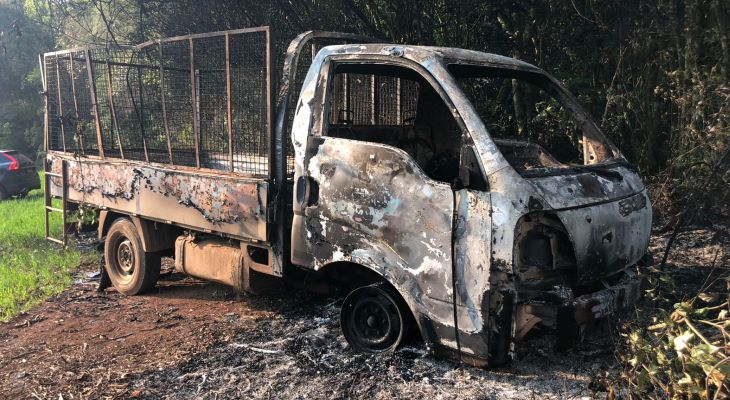 Na manhã desta quinta-feira (08), uma camionete foi encontrada incendiada próxima ao Clube de Tiro, situado a cerca de 500m da ERS-324, entre Marau e Vila Maria.