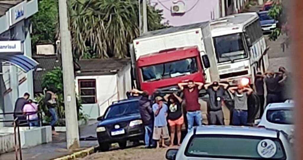 Um assalto a Agência do Banrisul de Santana da Boa Vista ocorreu na tarde de sexta-feira, 08/04. Os delinquentes chegaram em uma caminhonete Fiat Toro e um intenso tiroteio resultou na morte de um dos assaltantes.Os criminosos fizeram cordão humano e fugiram levando reféns e um dos seus comparsas que também ficou ferido na ação.
