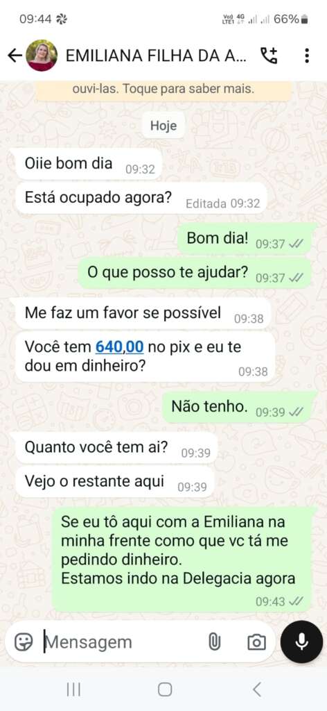 A família informa que não é a Emiliana quem está agindo dessa forma, e solicitam que bloqueiem qualquer tentativa de contato.