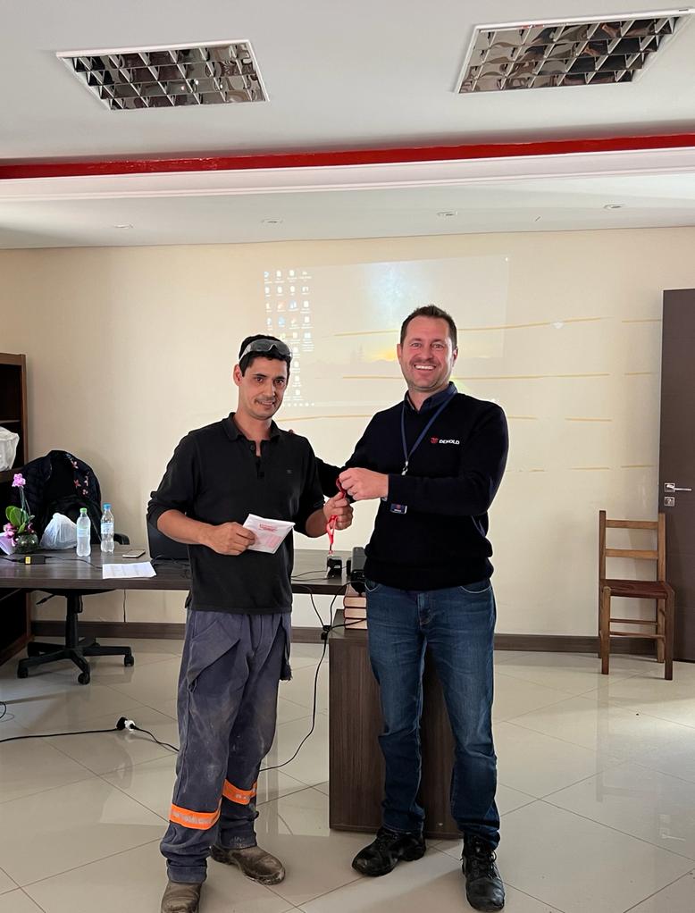 A manhã foi finalizada com o sorteio da moto, que teve como ganhador o soldador Eliandro de Matos. Eliandro está na Demold desde 2019 e atua no setor de formas.