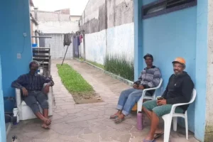 Apesar de estarmos em dezembro, ao entrar no imóvel que se transformou em abrigo, não é possível ver nenhuma lembrança que estamos próximo ao Natal. Ao todo dez pessoas moram no local. Entre os moradores que se revezam na busca de material para reciclagem e os cuidados com o abrigo estão os irmãos Idemar, Vanderlei e Darcy Pires dos Santos.