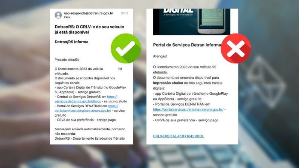 Outra forma de se proteger é sempre desconsiderar mensagens que fazem referência genérica a “Detran” e não trazem a informação da UF, como [email protected] ou [email protected], que são falsos, pois sequer têm o RS.