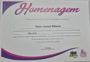 Dioni Junior Ribeiro recebe homenagem do MDB Mulher RS