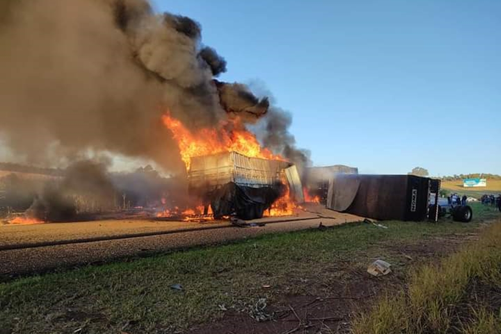 Dois caminhoneiros morrem carbonizado após carretas colidirem no PR