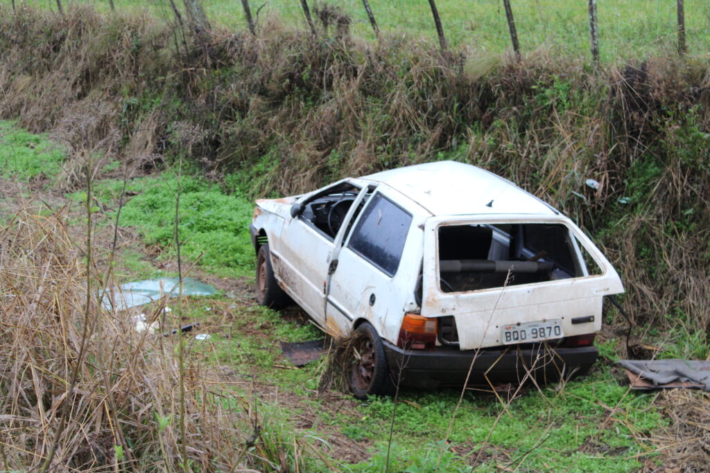 De acordo com as informações da Polícia Rodoviária Estadual de Tapera, um veículo UNO com placas de Lagoão perdeu o controle e saiu da pista, caindo em um barranco.