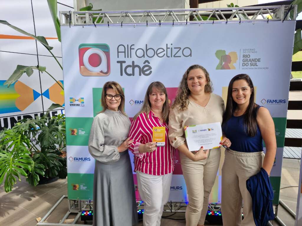 Acompanharam este momento a Coordenadora da SECT Josiane Kaster Rotta (professora da escola até dezembro/24), Daiane Munhoz, Coordenadora da SECT, e Dania Nicolini Borghetti, Secretária de Educação, Cultura e Turismo.