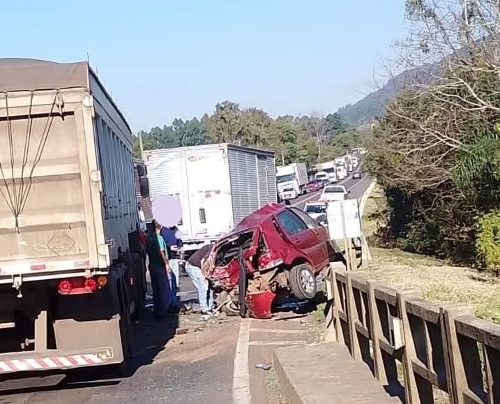Conforme a Polícia Rodoviária Federal (PRF), a pessoa que conduzia o Fiat Palio, com placas de Arroio do Meio, ficou presa entre as ferragens. O carro foi parar em cima da mureta da ponte. Equipes de resgate foram acionadas para o desencarceramento da vítima, que foi levada para atendimento médico no Hospital Bruno Born (HBB), em Lajeado.