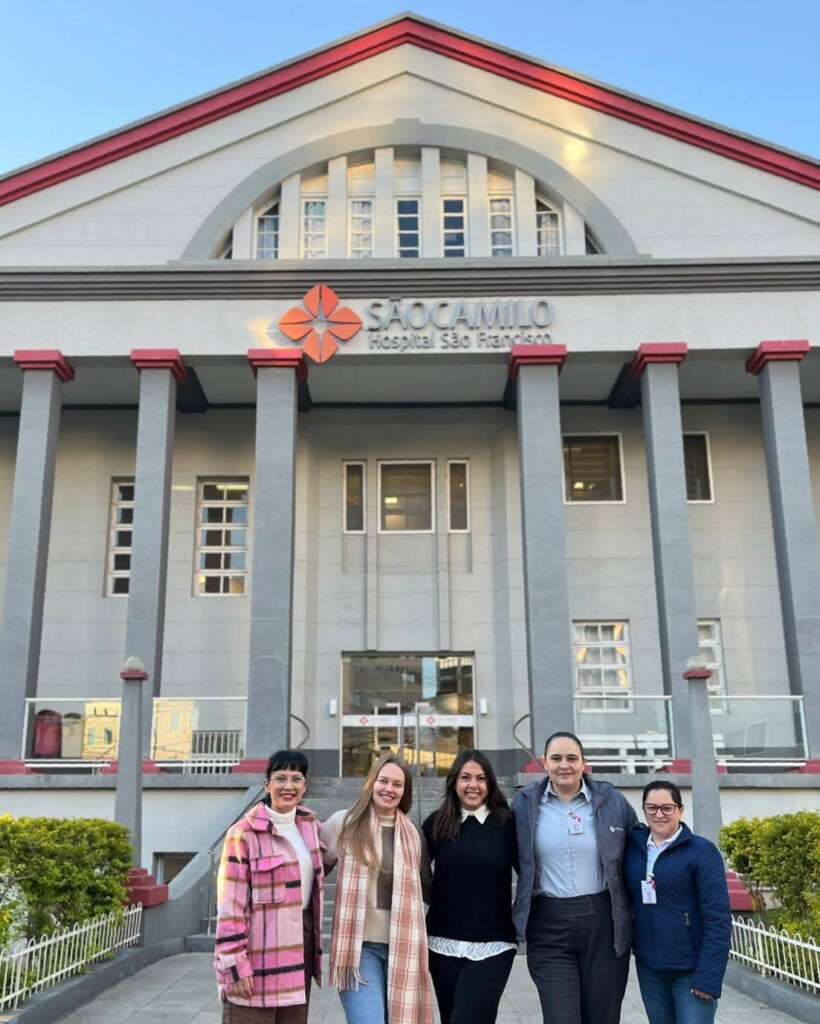 Em busca de padronização do atendimento no São Camilo – Hospital São Sebastião de Espumoso, uma equipe multiprofissional do Hospital São Sebastião, composta pela gerente administrativa Eliziane da Silva, gerente assistencial Eliane Barbosa, nutricionista Francini Borghardt, enfermeira Analupi Jorge e jornalista Ana Flávia Marafon, estiveram nesta quinta (12) e sexta-feira (13) no Hospital São Francisco em Concórdia/SC.