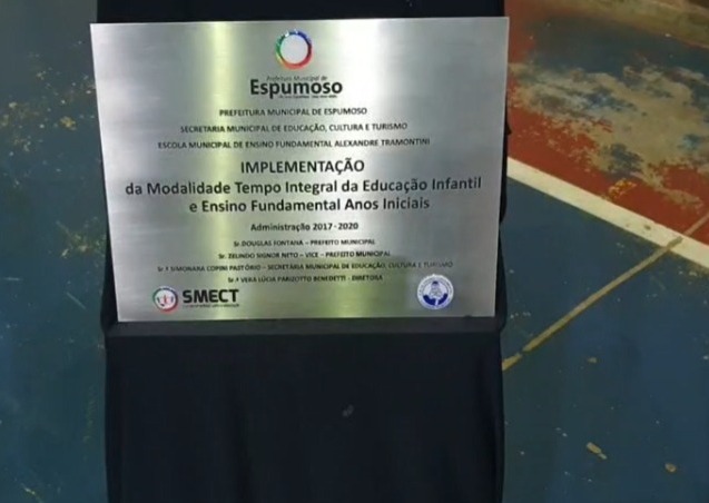 Na noite dessa segunda-feira, 29 de novembro, a Administração Municipal realizou a solenidade de descerramento da placa de Tempo Integral na EMEF Alexandre Tramontini.