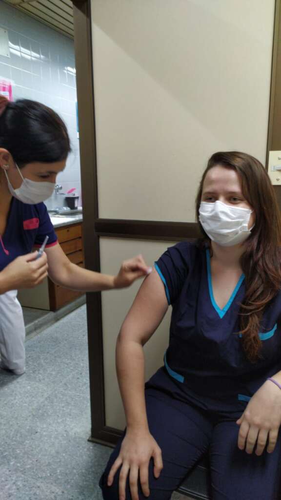 Espumosense Lais Rech Sanini é vacinada contra a Covid-19 na Argentina