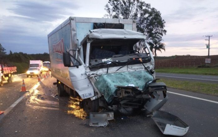 Morreu durante atendimento hospitalar o condutor de um dos caminhões acidentados na BR-386, no início da manhã dessa quinta-feira (24). Rael Loci Pereira da Silva (37) conduzia o caminhão Volkswagen com placa de Caxias do Sul. O veículo colidiu na traseira de um bitrem que estava carregado com 37 toneladas de milho.