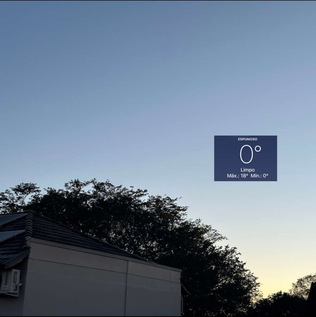 Espumoso, RS, começará o dia com céu limpo e geada nas primeiras horas da manhã. As temperaturas iniciarão em um frio de 0°C, mas subirão para agradáveis 19°C à tarde. Ao longo do dia, espera-se um aumento na nebulosidade, embora não haja previsão de chuva. Os ventos serão leves, vindos do leste-nordeste a cerca de 4 km/h. A umidade variará entre 29% e 72%, garantindo uma atmosfera relativamente seca.