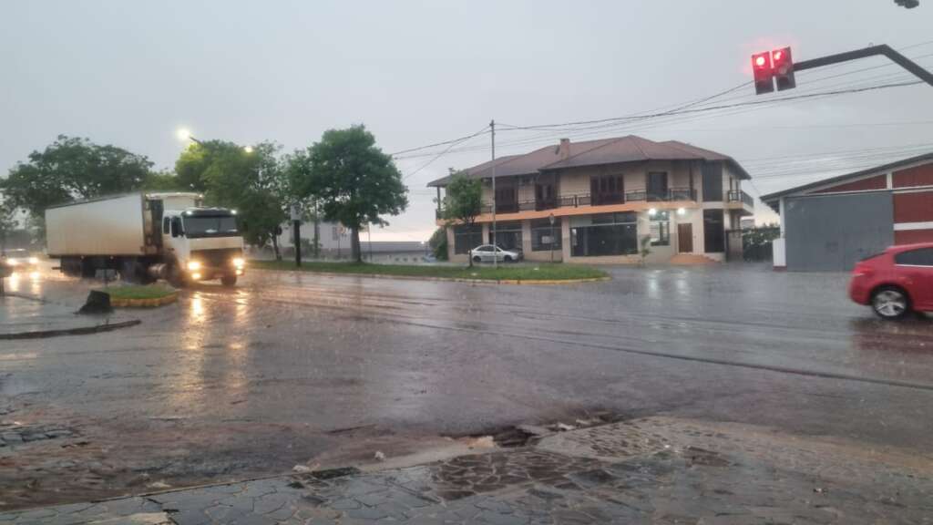A probabilidade de chuvas para hoje é bastante elevada, atingindo a marca de 94%. O cenário aponta para um dia com chuvas irregulares ao Norte do Estado, acompanhadas do risco de granizo. Os meteorologistas alertam para a possibilidade de temporais com acumulados significativos no Oeste e Sul, além de ventos intensos do Centro para o Litoral.
