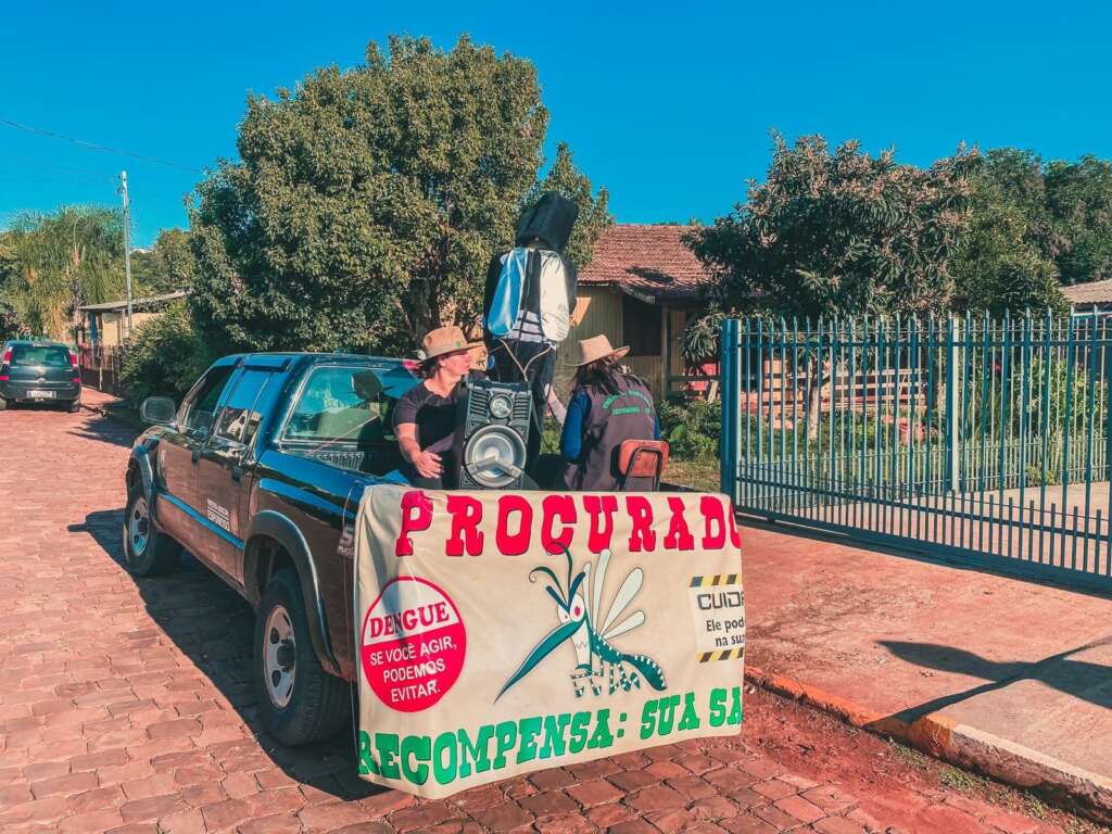 Uma das medidas adotadas para disseminar informações e orientações à população é a utilização de um veículo identificado e equipado com sistema de sonorização, que está percorrendo as ruas de Espumoso. Através desse meio de comunicação móvel, as equipes de combate ao mosquito têm a oportunidade de orientar os moradores sobre as ações necessárias para evitar a proliferação do Aedes aegypti.