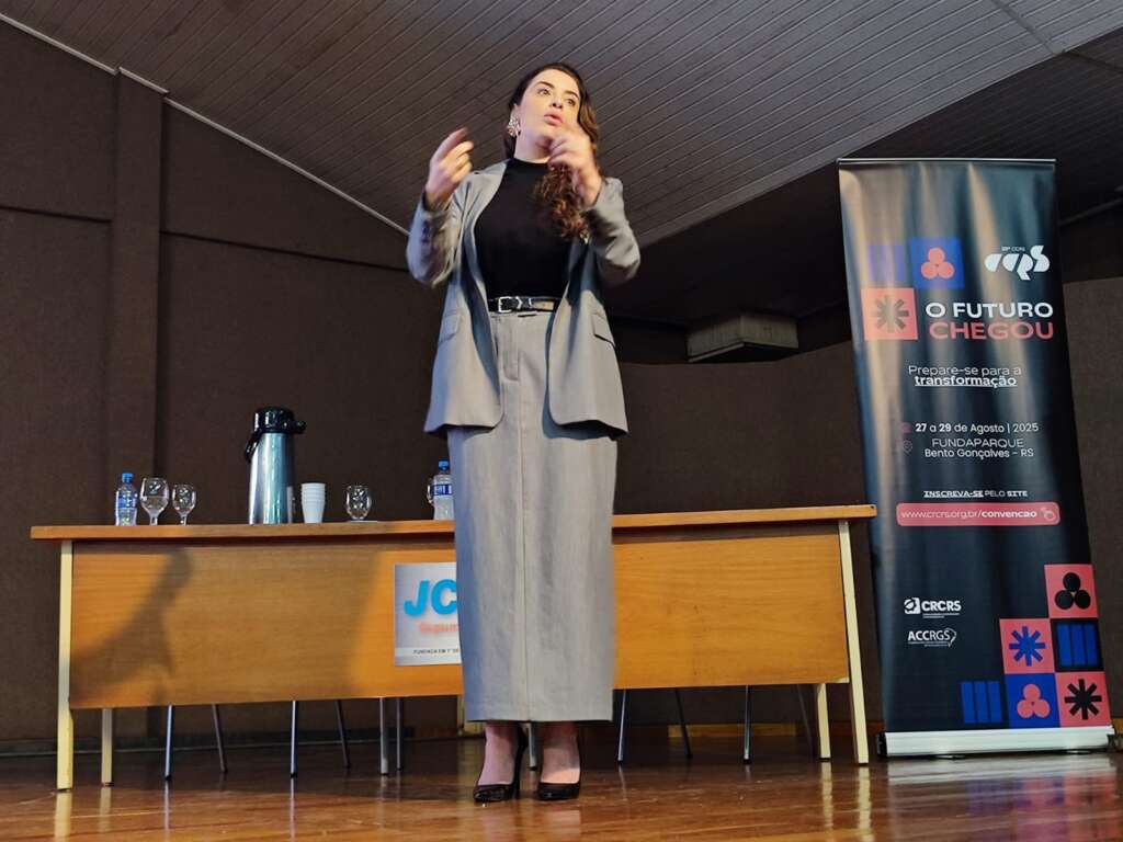 A programação contou com as falas de Patrícia Arruda, vice-presidente de Gestão do CRCRS, e Gustavo Ferres, conselheiro do CRCRS, que abordaram de forma prática e objetiva os reflexos das mudanças tributárias nas rotinas contábeis, nas empresas e na economia em geral.