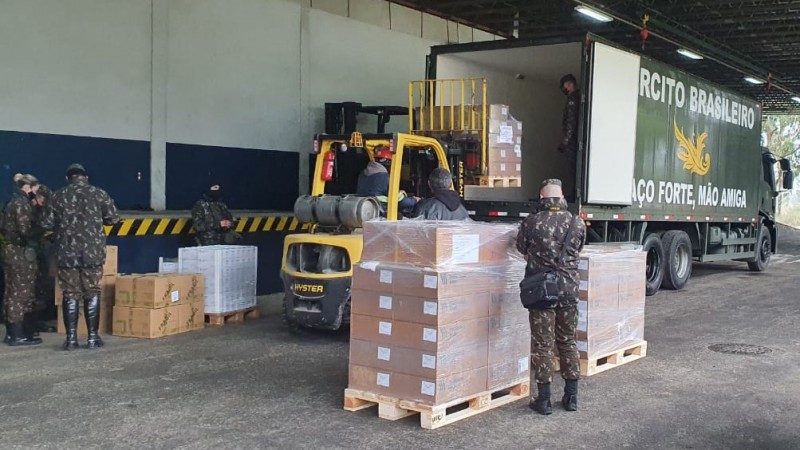 A carga foi carregada em caminhões do Exército Brasileiro e escoltada até Porto Alegre, depois de ser e recebida no Porto Seco de Jaguarão, fronteira como Uruguai. A cheda prevista em Porto Alegre é na madrugada deste sábado (18). Parte desses medicamentos está sendo destinada a Florianópolis (SC).