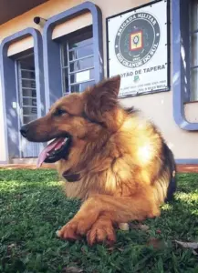 Alemão é um cão peludo e brincalhão. Uma mistura de vira lata com pastor alemão, e mora no quartel da Brigada Militar na cidade de Tapera/RS.