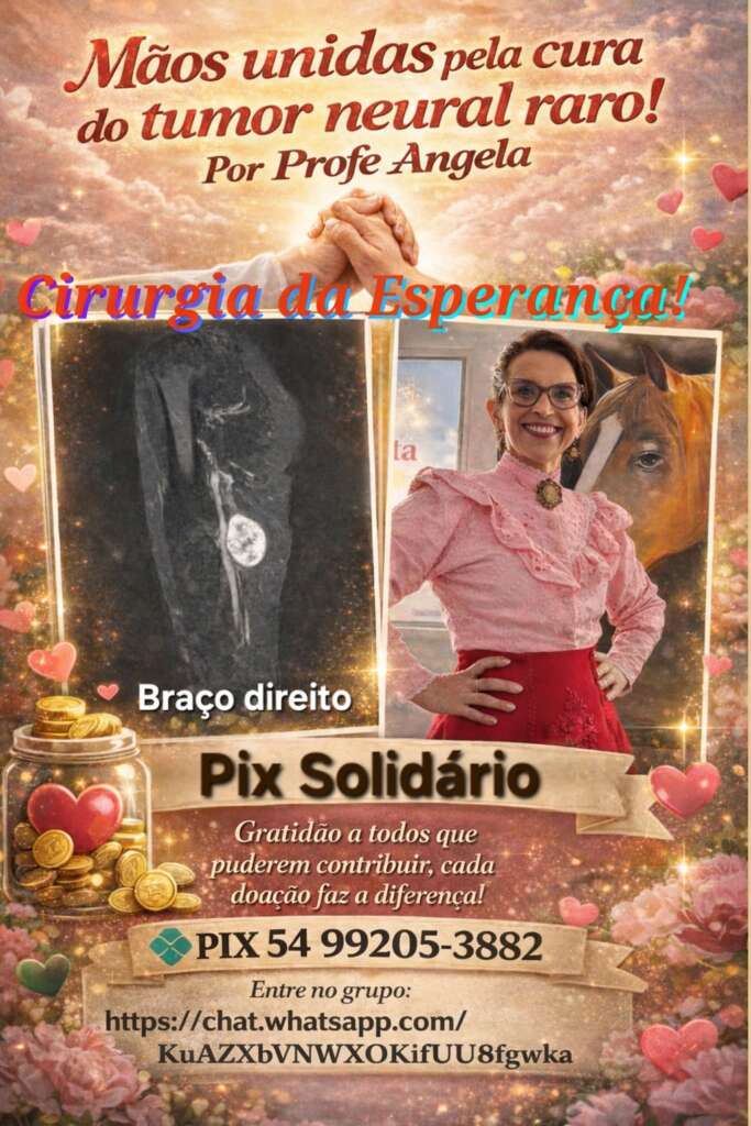 No dia 14 de janeiro deste ano o Clic Espumoso divulgou a batalha enfrentada pela professora Angela Maria Silva. Ela estava aguardando cirurgia para retirada de um tumor neural no braço direito.
