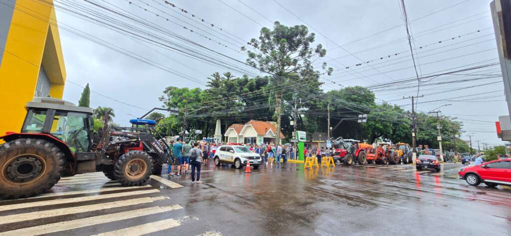 Produtores Rurais da Regional do Alto Jacuí estão protestando em Não-Me-Toque nesta manhã de segunda-feira.