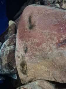 Além disso, na câmara fria do açougue foram localizados cortes de carne com as mesmas características inadequadas e rotulados como “carne de processamento”, com revalidação de datas, o que aumenta a gravidade das irregularidades constatadas.