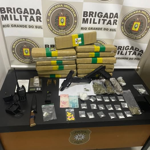 A prisão ocorreu após abordagem ao veículo em que o suspeito estava. No interior do automóvel, os policiais encontraram porções de drogas, dinheiro e um rádio comunicador sintonizado na frequência da Brigada Militar.