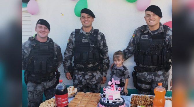 A tarde desse domingo, 19, foi um dia muito especial para a pequena Ana, de apenas 03 anos de idade. A equipe da Força Tática da Brigada Militar de Passo Fundo se fez presente em sua casa, para participar das festividades e tornar realidade o sonho da garotinha.
