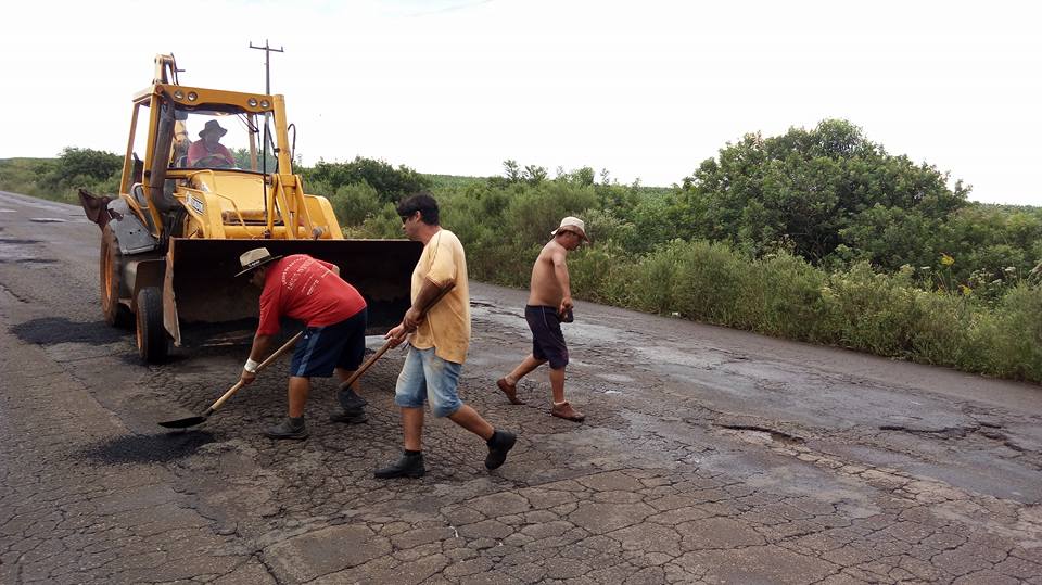 O trabalho está sendo realizado através de um pedido do prefeito e do assessor do Deputado Eduardo Loureiro, Márcio Bosa, que conseguiram a massa asfáltica para realizar o tapa buracos.