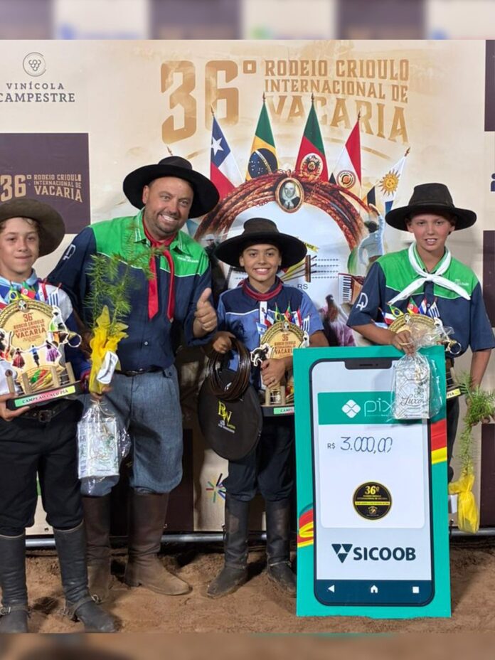 Após 15 voltas de disputas acirradas, Luís Otávio encerrou a competição na primeira colocação, garantindo o título da modalidade. Filho de Flávio Santos, coordenador da área campeira do Rodeio Internacional de Soledade, e de Ângela Costa, o jovem competidor estreou no rodeio de Vacaria com chave de ouro.
