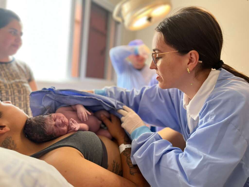 O choro logo que a pequena nasceu durou poucos minutos. Como num passe de mágica, assim que a pediatra Dra. Lilian Missio a aproximou da mãe, ele cessou. Mas não havia nada de mágica. A chamada “golden hour” no parto é a primeira hora de vida do recém-nascido e é considerada uma hora de ouro por ser crucial para o vínculo entre mãe e bebê, além de trazer benefícios fisiológicos e emocionais para ambos.