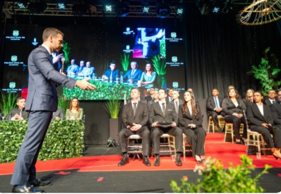 Em seu pronunciamento, Leite, que foi escolhido como patrono da turma, dirigiu-se diretamente aos formandos para ressaltar que ingressar no serviço público vai além da conquista de um emprego, sendo uma verdadeira missão de vida em prol da sociedade. Ele também destacou a importância de manter a motivação mesmo diante de desafios e lembrou que a dedicação dos novos delegados deve estar voltada à população gaúcha.