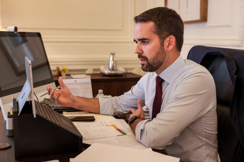 O governador Eduardo Leite participou, na tarde dessa quinta-feira (24/2), por videoconferência, de reunião organizada pela Federação da Agricultura do Estado do Rio Grande do Sul (Farsul) para tratar sobre a estiagem que atinge o Estado e sobre os seus efeitos na economia.