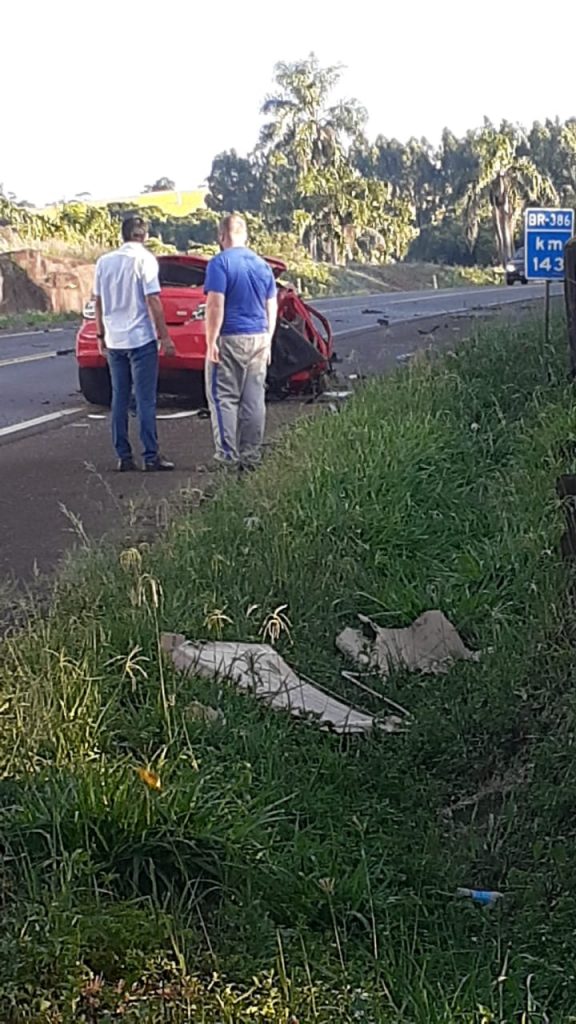 Um grave acidente envolvendo um veículo Gol, de cor vermelha, foi registrado na manhã de hoje na BR 386, próximo a Sarandi e deixou um homem morto. O veículo Gol tem placas de Sarandi-RS.