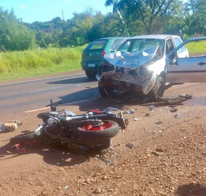 Uma colisão entre um veículo Gol e uma motocicleta por volta das 8h15min desta terça-feira, (17/12), deixou um motociclista ferido.