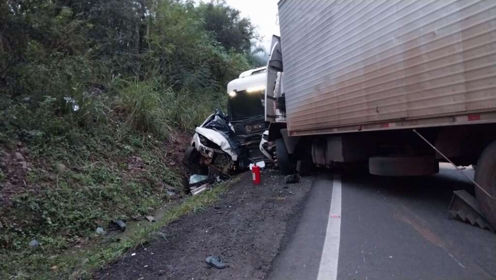 Um grave acidente resultou na morte de uma pessoa na manhã desta sexta-feira (10) na ERS 446, altura do km 9, na região de Santa Clara Baixa, situada entre Carlos Barbosa e São Vendelino. A colisão ocorreu por volta das 7h e envolveu três caminhões e um veículo de passeio.