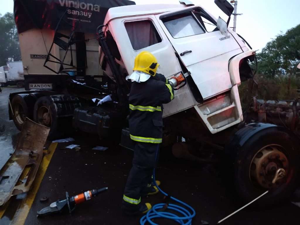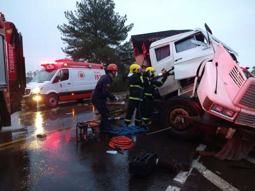 Na manhã desta terça-feira (05), um grave acidente entre duas carretas deixou um condutor preso nas ferragens no km 304 da BR-285, em Passo Fundo.