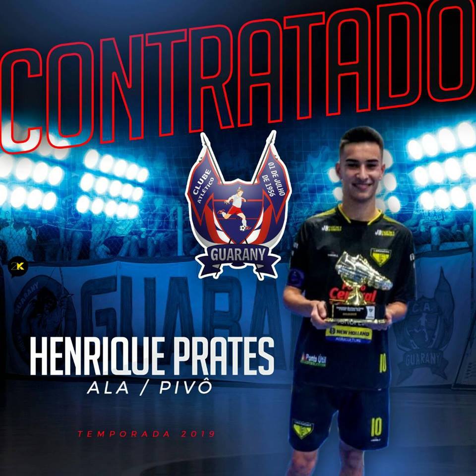 O Guarany anunciou há pouco a contratação de mais um prata da casa. Desta vez o acerto é com a promessa das categorias de base do Unidos do América. O jovem Henrique Capalonga Prates, o Capinha, vai defender o Guarany na Liga Gaúcha de Futsal 2019.