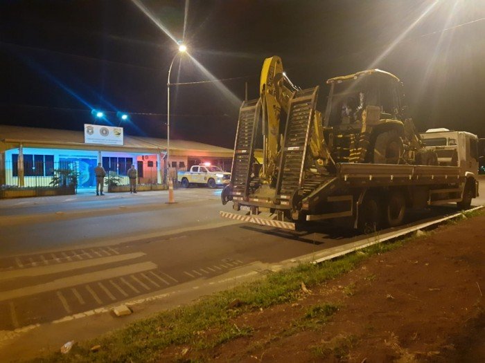 Durante a ação, o Grupo Rodoviário localizou um caminhão de forma suspeita chegando em Erechim, no Alto Uruguai. Foi verificado que estava transportando a retroescavadeira furtada.