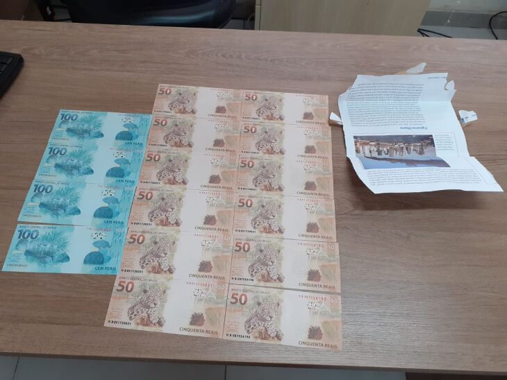 O pacote foi verificado e continha várias cédulas de real com indícios de falsidade.