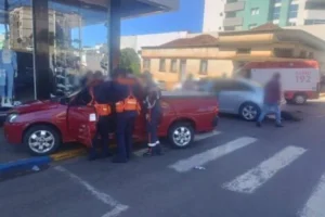 Na manhã deste domingo, 6 de abril, um acidente de trânsito foi registrado na esquina da Avenida Marechal Floriano Peixoto com a Rua Venâncio Aires, no centro de Soledade. A colisão envolveu dois veículos e deixou três pessoas feridas.